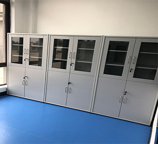 (4)层板:25mm三聚氰胺板(表面也可贴耐酸碱理化板);或者内设耐腐蚀PP层板,可存放各类化学药品(阶梯式层板可存放高度不一的药瓶,方便取放